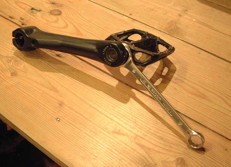 prop the spanner-crank-pedal assembly on the ground so it forms a little